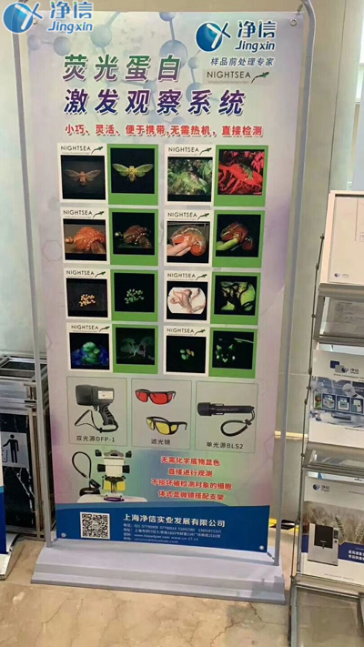 同時,在此次展會上,上海凈信還推出了一款沉淀已久的新產(chǎn)品—美國NightSea熒光蛋白激發(fā)觀察系統(tǒng),這是一款無需化學(xué)底物顯色,直接進行觀測,不損壞被檢測對象細(xì)胞的設(shè)備,擁有小巧、靈活、易攜帶、使用簡便等優(yōu)點,對于有轉(zhuǎn)基因?qū)嶒炐枨蟮目蒲腥藛T,是一種特別“對胃口”的產(chǎn)品;其原理是發(fā)出的特種光源照射至生物表面時,佩戴專用濾光鏡(過濾掉大部分反射光只保留所需要的光源);便可實時觀察生物的基因變化狀態(tài),目前分為單光源和雙光源兩種型號。